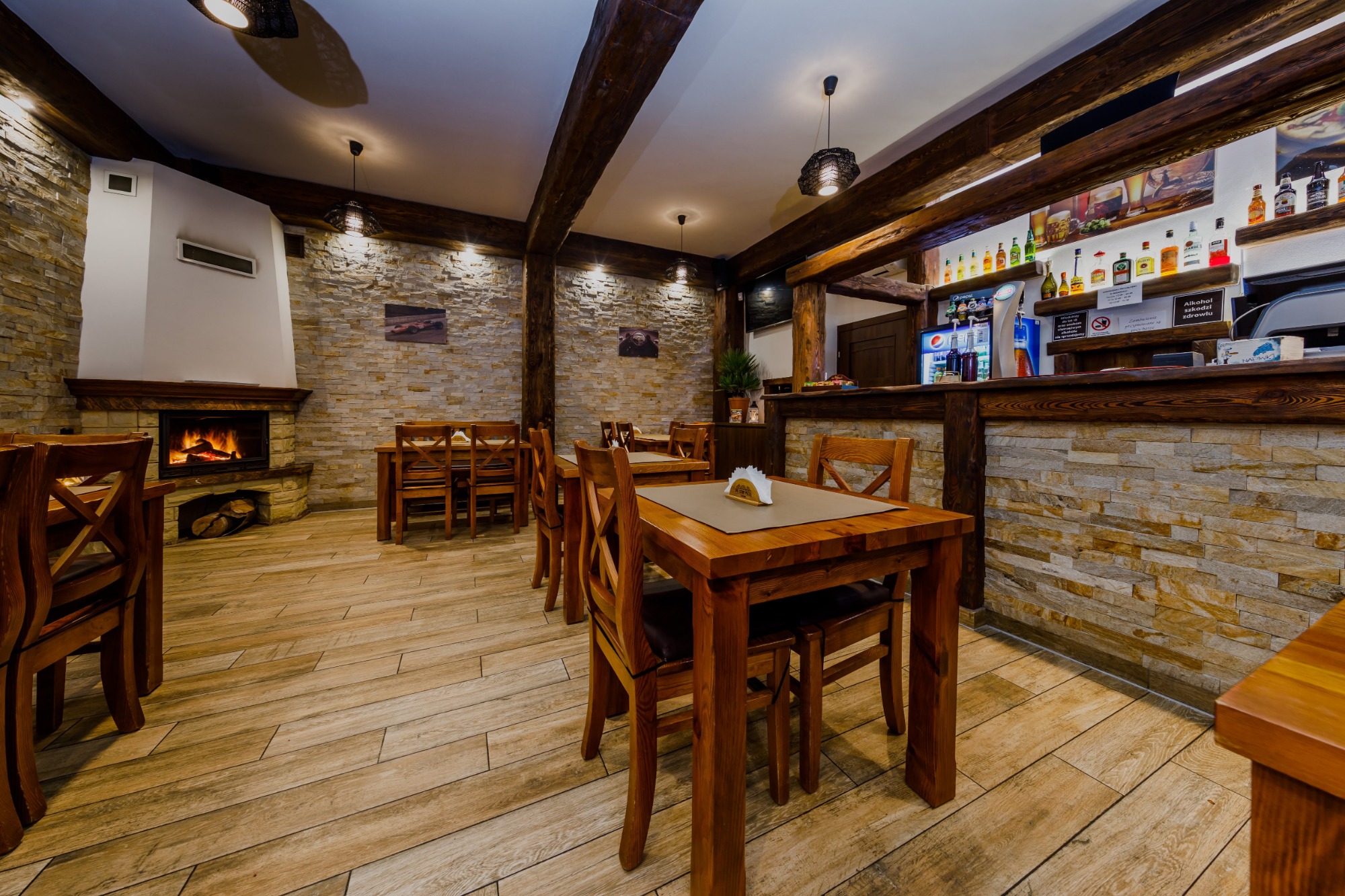 W naszym lokalu na ulicy Leskiej 6 panuje rodzinna i przytulna atmosfera, która szczególnie zimą zachwyca ciepłem bijącym od kominka. Latem natomiast nasi goście mogą cieszyć się posiłkiem na tarasie z widokiem na nasze osiedle, a dzieci mogą skorzystać z certyfikowanego placu zabaw.